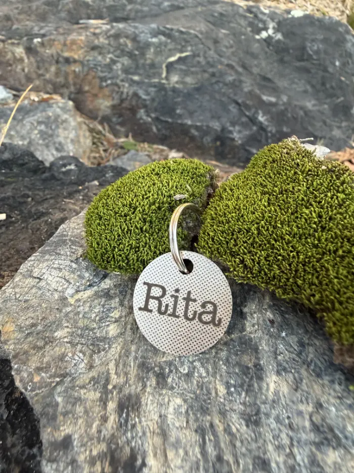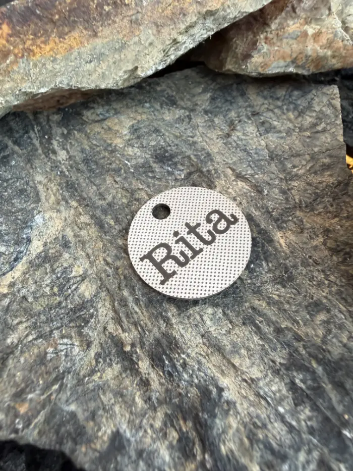 Na nerezovou psí známku v oblíbeném kulatém provedení vám precizně vygravírujeme jméno pejska a to nejdůležitější telefonní číslo tak, aby obojí zůstalo i přes vlivy počasí neustále čitelné. Takhle spolehlivé gravírování okamžitě napoví nálezci vaše kontakty a ztracený pejsek může jet ihned domů.